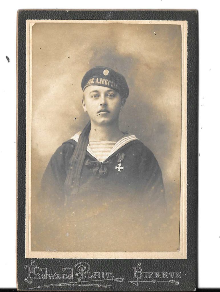 Matelot sur le dreadnought Guénéral Alexeev en décembre 1920 puis à Bizerte. Croix de Saint Georges.