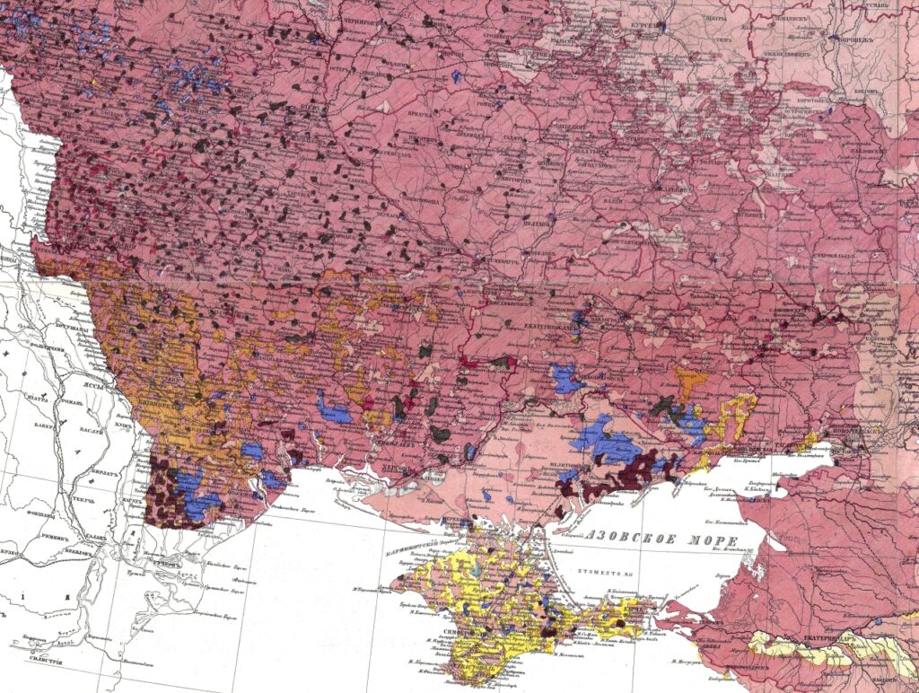 Ci-dessous un extrait de la carte ethnographique de Rittikh couvrant l’Ukraine actuelle.