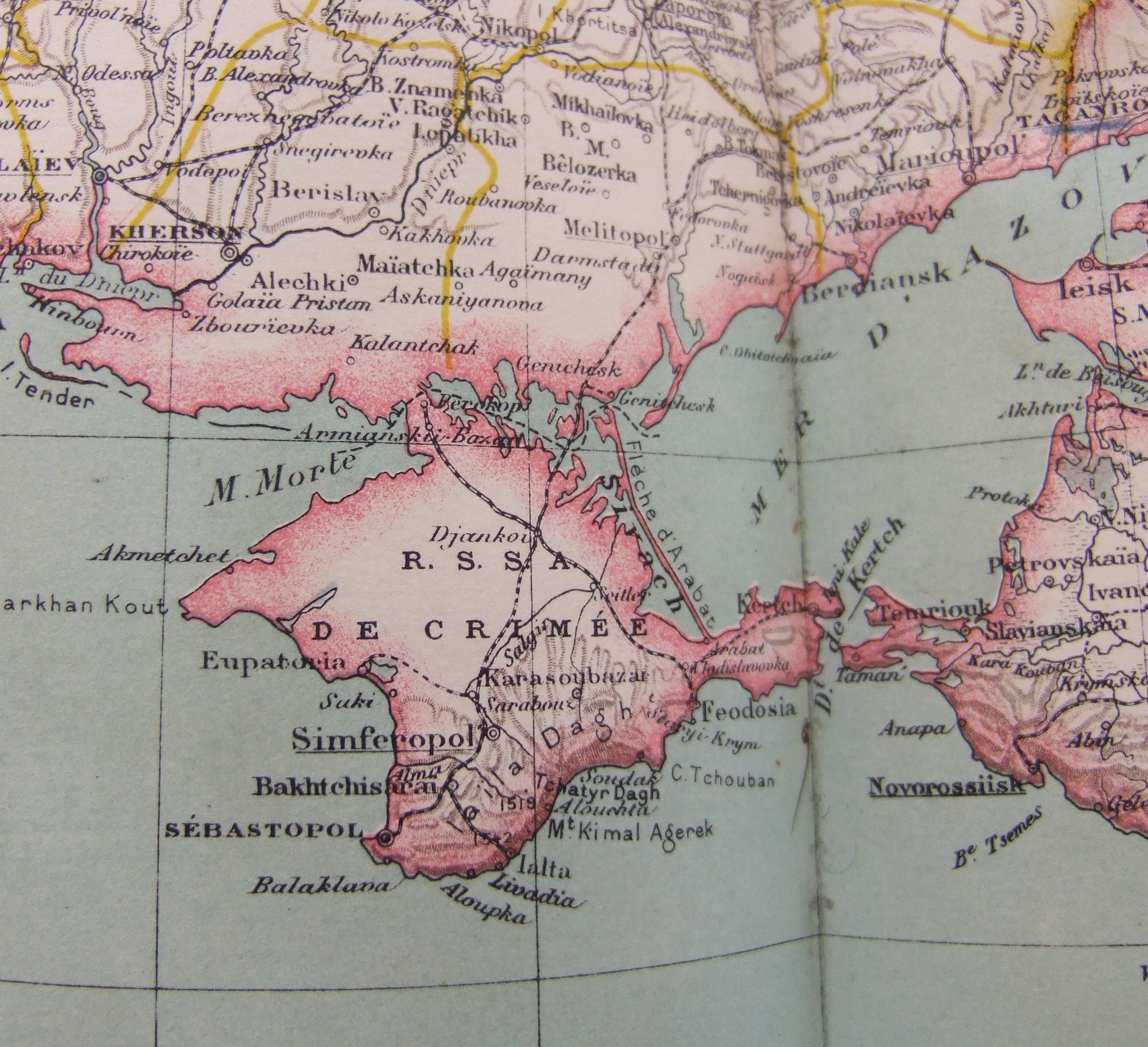 La Crimée est une forteresse naturelle formidable utilisée par le passé en cette qualité depuis des siècles par les Tatares de Crimée. L’isthme de Crimée est traversé par des grands lacs d’eau saumâtre reliés à la mer, et la bande de terre qui relie la presqu’île au continent a une largeur d’environ une dizaine de kilomètres. La ville qui en commande un des accès se nomme Perekope ce qui signifie le fossé et il y a bien un fossé de rempart sur toute la largeur de la bande de terre qui relie la presqu’île au continent à proximité de la ville. Ce fossé est réellement impressionnant, il a une quarantaine de mètres de largeur pour une profondeur de 8 à 10 m. Du côté de la Crimée il y a également un remblai d’une largeur de 12 à 15 m et d’une hauteur de 8 à 10 m.