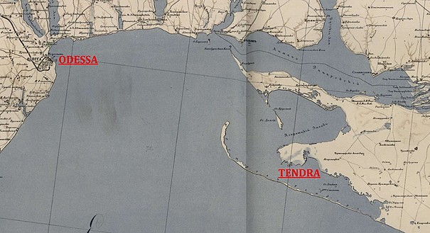 La baie de Tendra et Odessa (extrait de carte de l’époque). Cliquez pour zoomer.