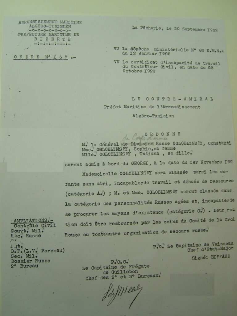 Au 1er août 1922, 500 personnes partirent pour la France et il ne resta en Tunisie que 1800 réfugiés et marins russes.