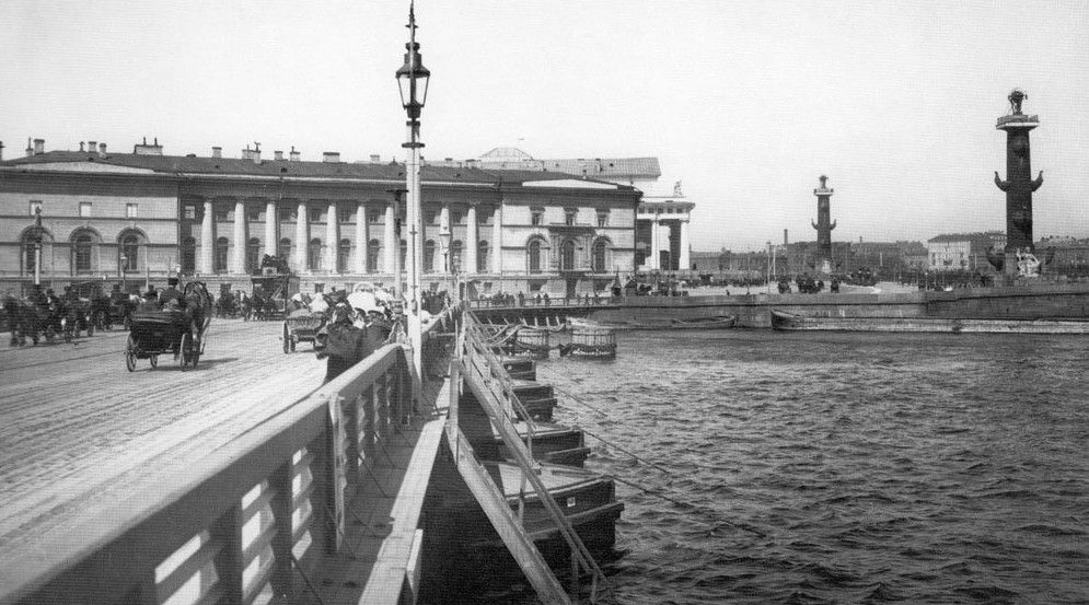 Après avoir enlevé les cadenas des fusils et distribué les cartouches, nous baissâmes les stores et restâmes dans le dortoir, parlant à voix basse et jetant souvent des coups d’œil par les fenêtres pour voir ce qui se passait dans la rue. Sur le fond blanc de la neige qui couvrait la rue, on voyait les silhouettes des passants, de plus en plus nombreux, qui se dirigeaient le long du Bolchoi Prospect, le long de la cathédrale de Saint basile le bienheureux,5Note PL : il s’agit en réalité de la Cathédrale du Saint-Sauveur-sur-le-sang-versé qui ressemble à la cathédrale de Basile le bienheureux de Moscou.vers l’usine pyrotechnique qui se trouvait au bout de l’île Vassiliev sur laquelle se trouvait nos casernements. Même à travers le double vitrage de notre salle, on entendait le grondement des voix de la foule