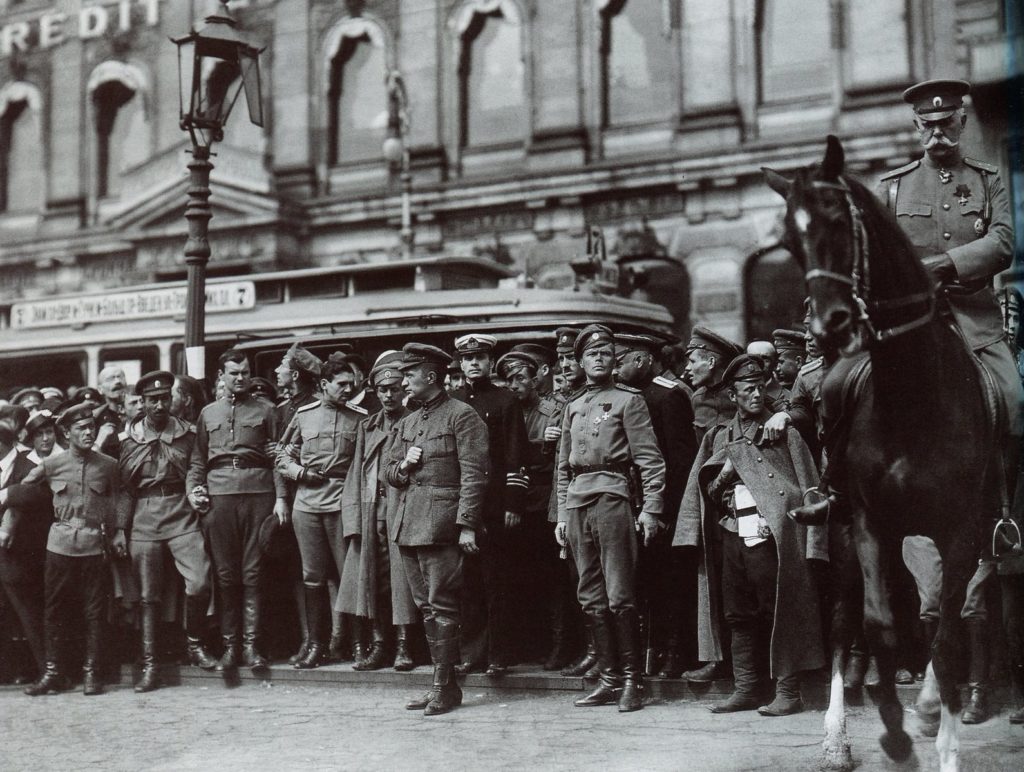 Quant à l’Armée, c’était la décomposition morale complète, et sous l’effet des slogans « Paix aux chaumières-guerre aux palais », les soldats commençaient à abandonner le front.