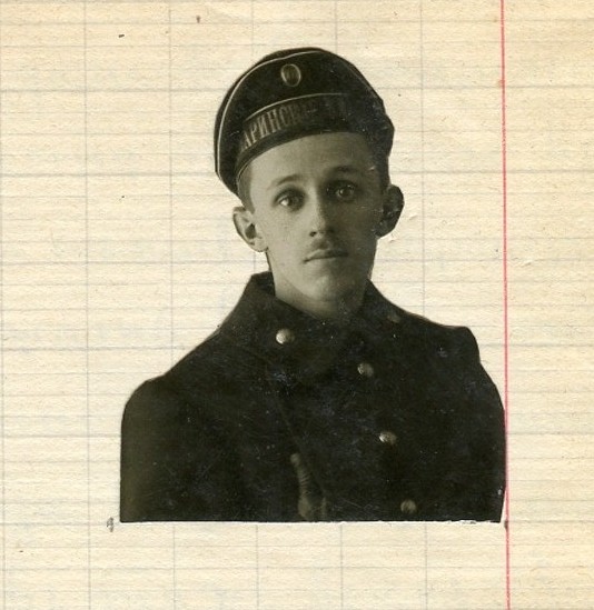 Fin février, j’étais en train de passer l’examen sur la déviation des compas. Nous étions dans une petite salle de classe. Outre l’Officier Navigateur, il y avait le Contre-amiral Frolov4Note PL : Frolov Sergeï Ivanovich, né en 1869. École navale en 1890. Contre-amiral, responsable des classes spéciales de gardes-marine. Décédé au printemps 1919 à Kiev (Source : S.V. Volkov). en personne. Pendant mon exposé, qui semblait bon à juger par le sourire sur la face du Commandant de l’Ecole, je vis, par la porte vitrée, le Michman P. Ejov, la face apeurée, frappant à la porte et demandant l’autorisation d’entrer.
