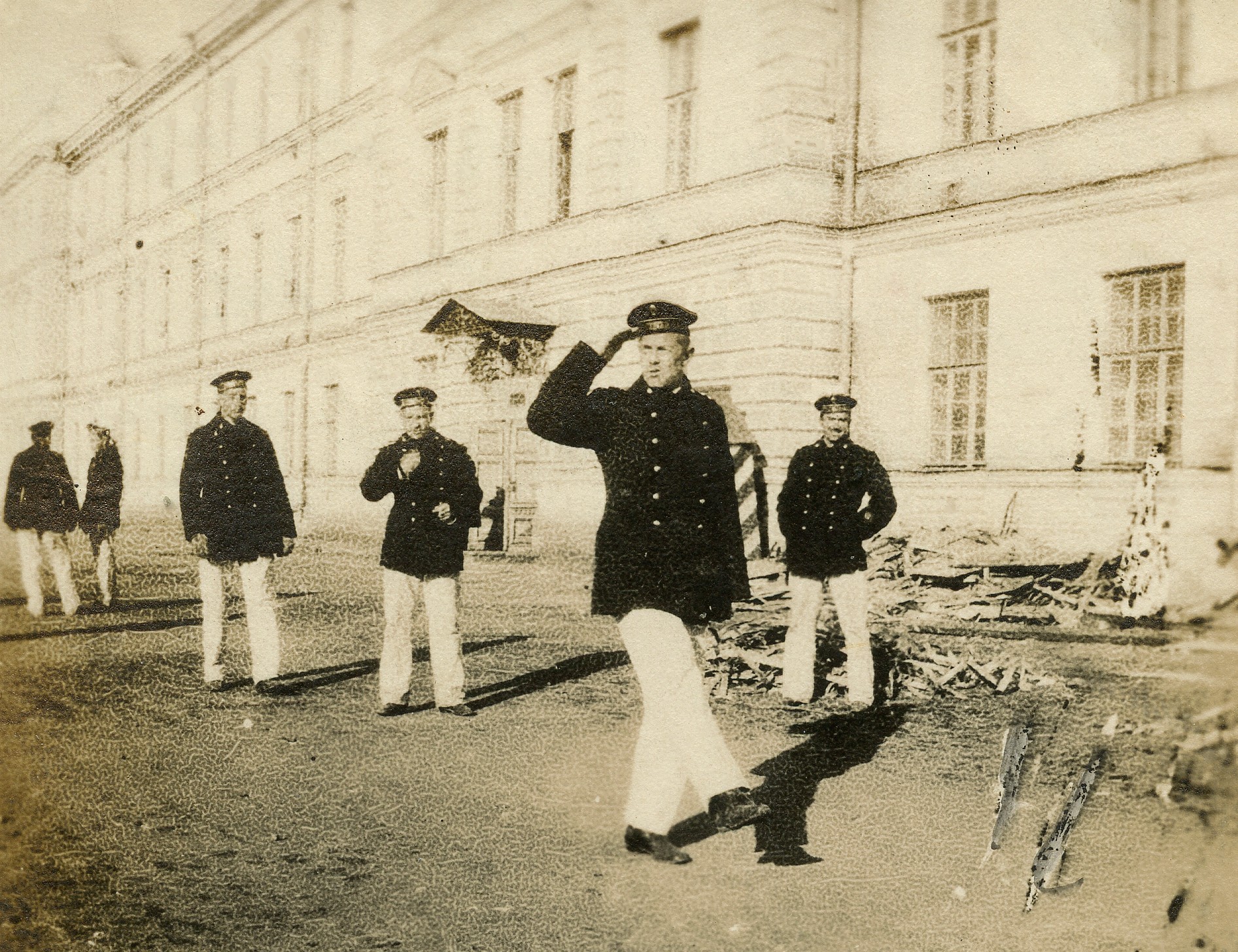 Le troisième jour, je commençai mes visites aux amis et connaissances. Je passais au lycée où je rencontrais le directeur et professeur d’histoire Finakov, ainsi que quelques camarades qui n’avaient pas encore été appelés aux drapeaux. Je visitai aussi le Lycée de Jeunes Filles où étudiait ma sœur cadette. Et le temps passa très vite. J’aurais bien voulu rester encore quelque temps, mais il fallait rentrer pour ne rater de début de la 2ème année des Classes de gardes-marine.