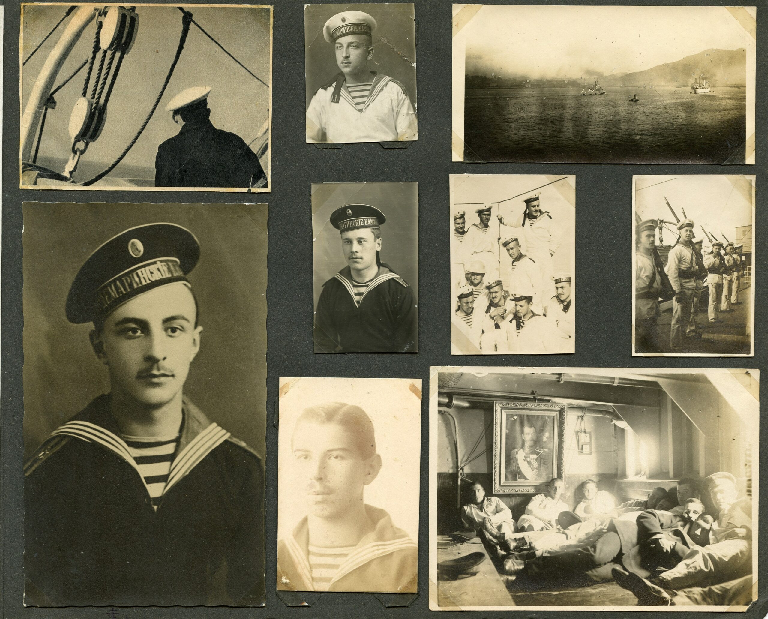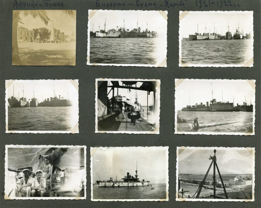 БОЛЬШИНСТВО ФОТОГРАФИЙ АЛЬБОМА СООТВЕСТВУЮТ ТЕКСТУ «ВОСПОМИНАНИЯ ОФИЦЕРА РOССИЙСКОГО ФЛОТА ИВАНА РОЗОВА В РЕВОЛЮЦИОННОЙ СМУТЕ. ИЗ ПЕТРОГРАДА В БИЗЕРТУ.«