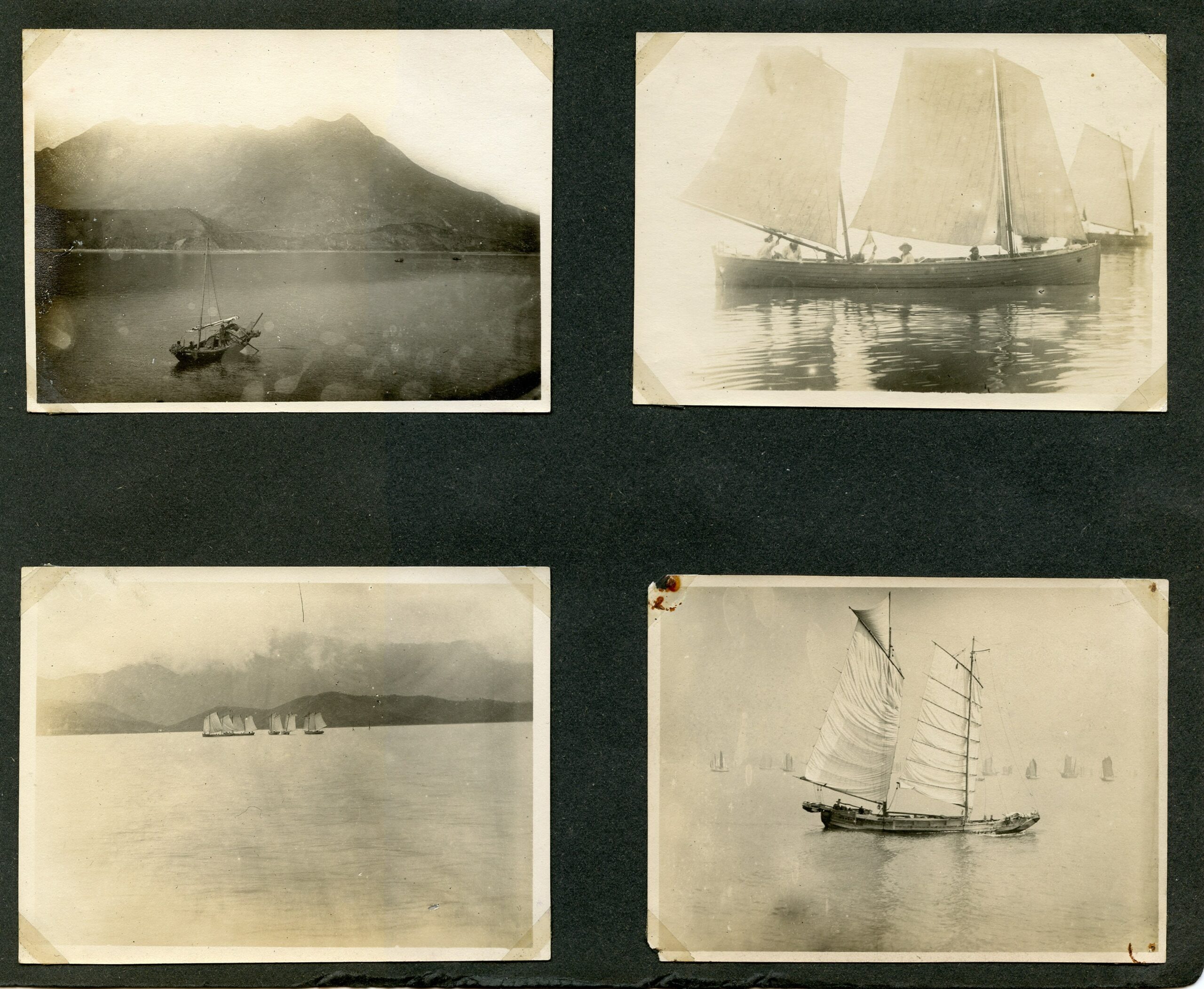 Стр. 22. Фотография 1 : Мирзбей. Фотография 2 : Парусные учения. Фотография 3 на обороте : Мирзбей. Парусные учения. Фотография 4 : Средиземное море (?) (яхта) парусник.