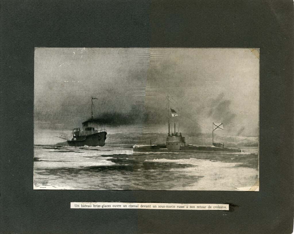Стр. 50. (Перевод с французского) Ледокол пробивает канал перед русской подводной лодки после возвращения с круиза.