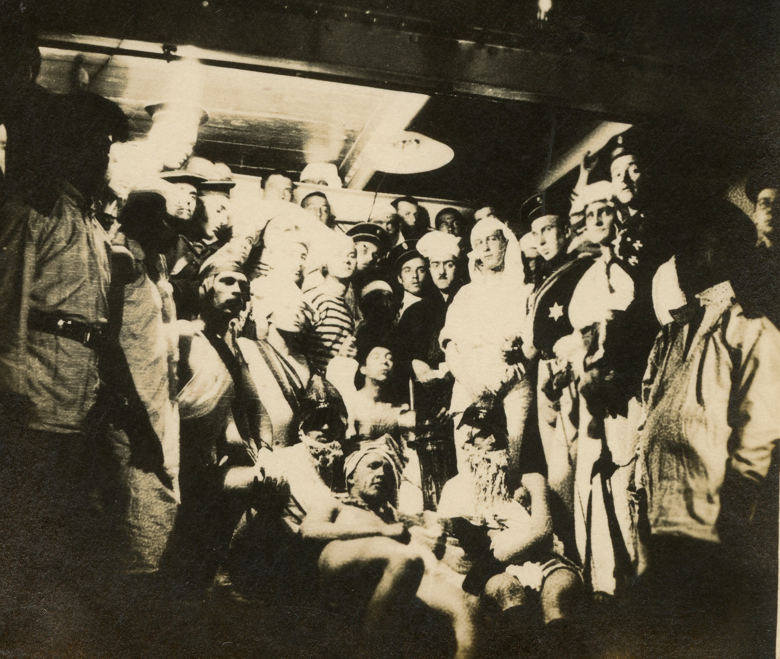 По случаю дня коронации японского императора, в городе можно было встретить праздничные манифестации-шествия. Одну из таких повстречали и мы. Вечером город принял особо живой вид. Всюду, посреди главных улиц тянулись «лодки» торговцев, иллюминированные цветными фонариками. Здесь можно было достать все — от лакомств до предметов первой необходимости. Дорогой зашли в ресторан. Кое-как расплатились русскими деньгами и восвояси вернулись на крейсер, немножко разгоряченные вином.