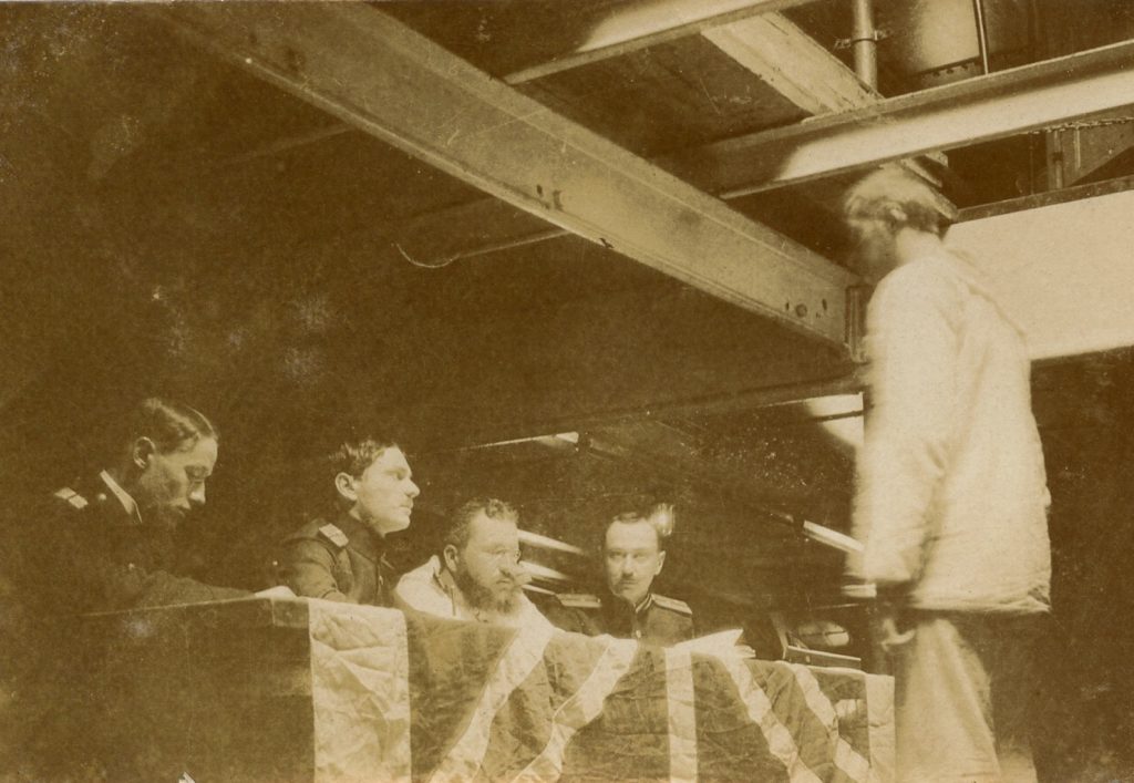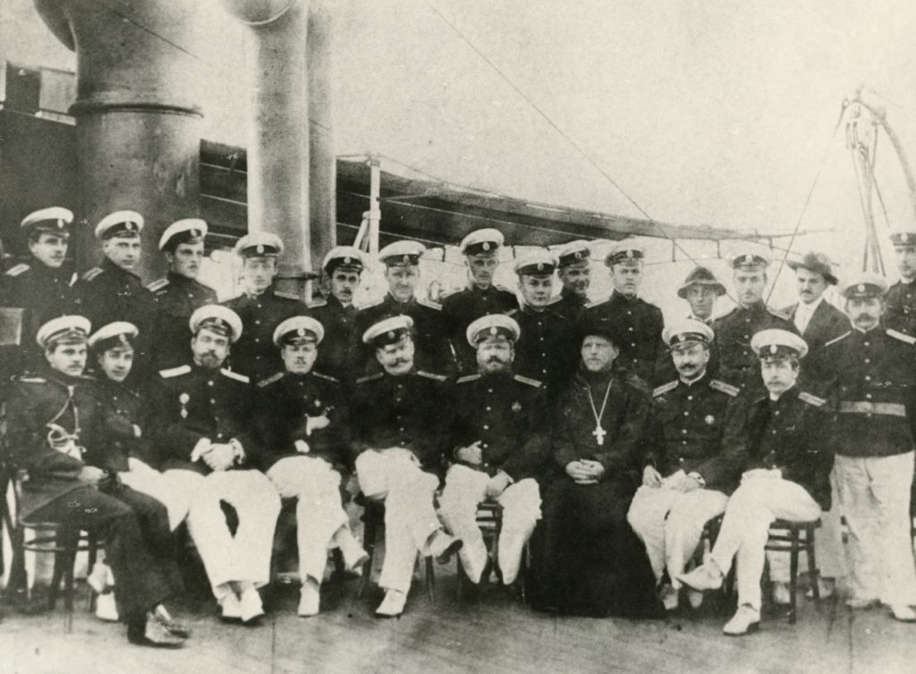 В 10 ч. утра был отслужен напутственный молебен в присутствии Адмирала, офицеров и многих посторонних гостей.