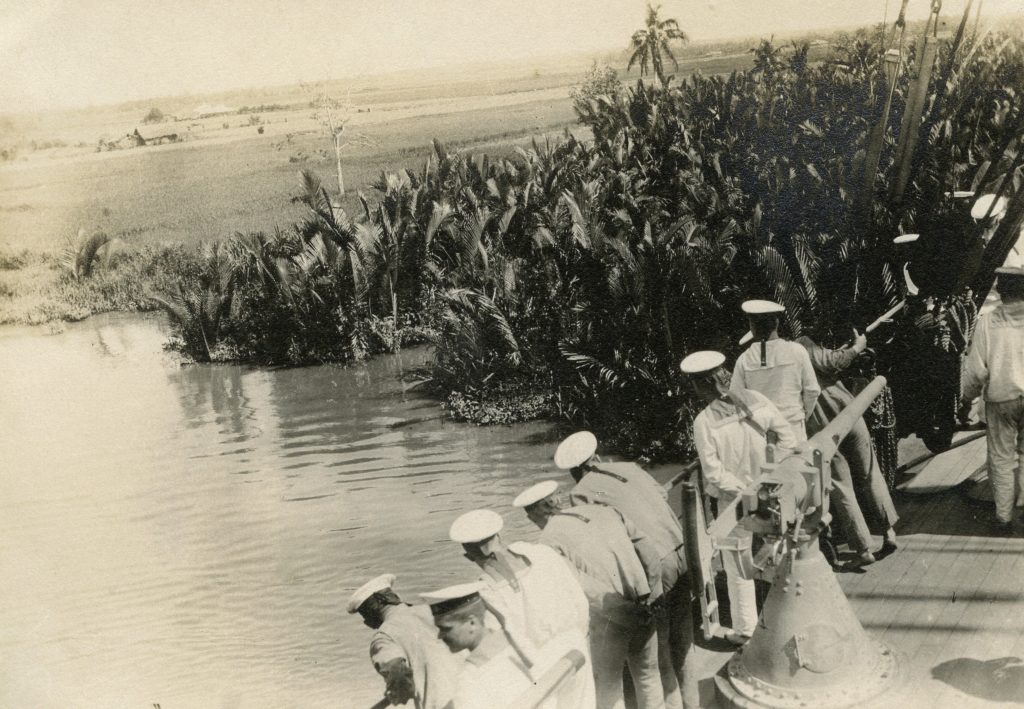 Затем с берега прибыла портовая японская администрация заявить нам свое почтение и осведомиться о наших дальнейших путевых планах и намерениях, т.е. — долго ли мы намерены оставаться в порту и тому подобных вещах. Предполагалось стоять не больше трех дней, но, так как у нашего крейсера осели котлы, то, наверное, придется простоять дольше.
