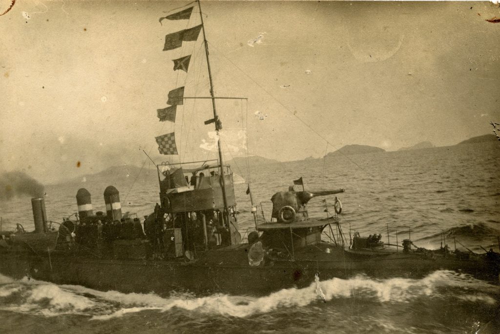 Еще до подъема Флага начали входить в Залив Петра Великого. По беспроволочному телеграфу получили из Владивостока (из штаба Командующего Сибирским Флотом) телеграмму, что миноносец «Статный» вышел нас встречать.