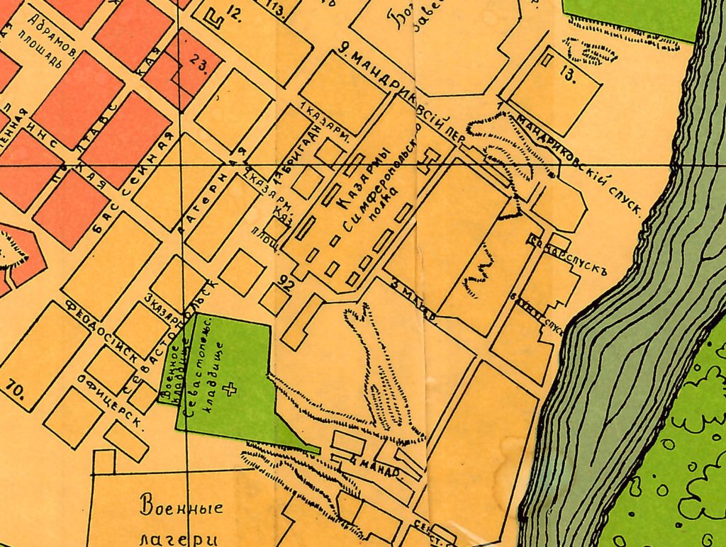 Часов в 9 вечера меня отправили в караул на дальний угол Севастопольского Кладбища недалеко от спуска в Жандармскую балку.