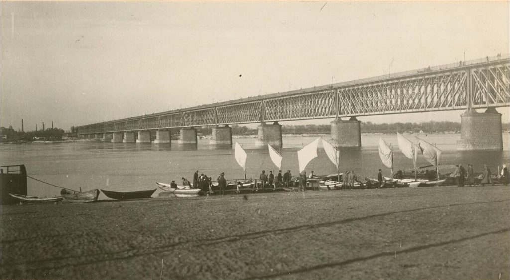 Наконец пришел поезд. Мы, «черные гарды» с легкостью и проворством вскочили в него. Поезд был переполнен народом. Постоим : прогон малый — всего — лишь каких-нибудь 20-30 минут!. Вот на повороте увидели наш прекрасный широкий мост через Днепр. Позади остались Верхне-Днепровск и Нижний Днепровск. Замедлив ход и описывая малую дугу, поезд подходит к вокзальному, такому знакомому, перрону.
