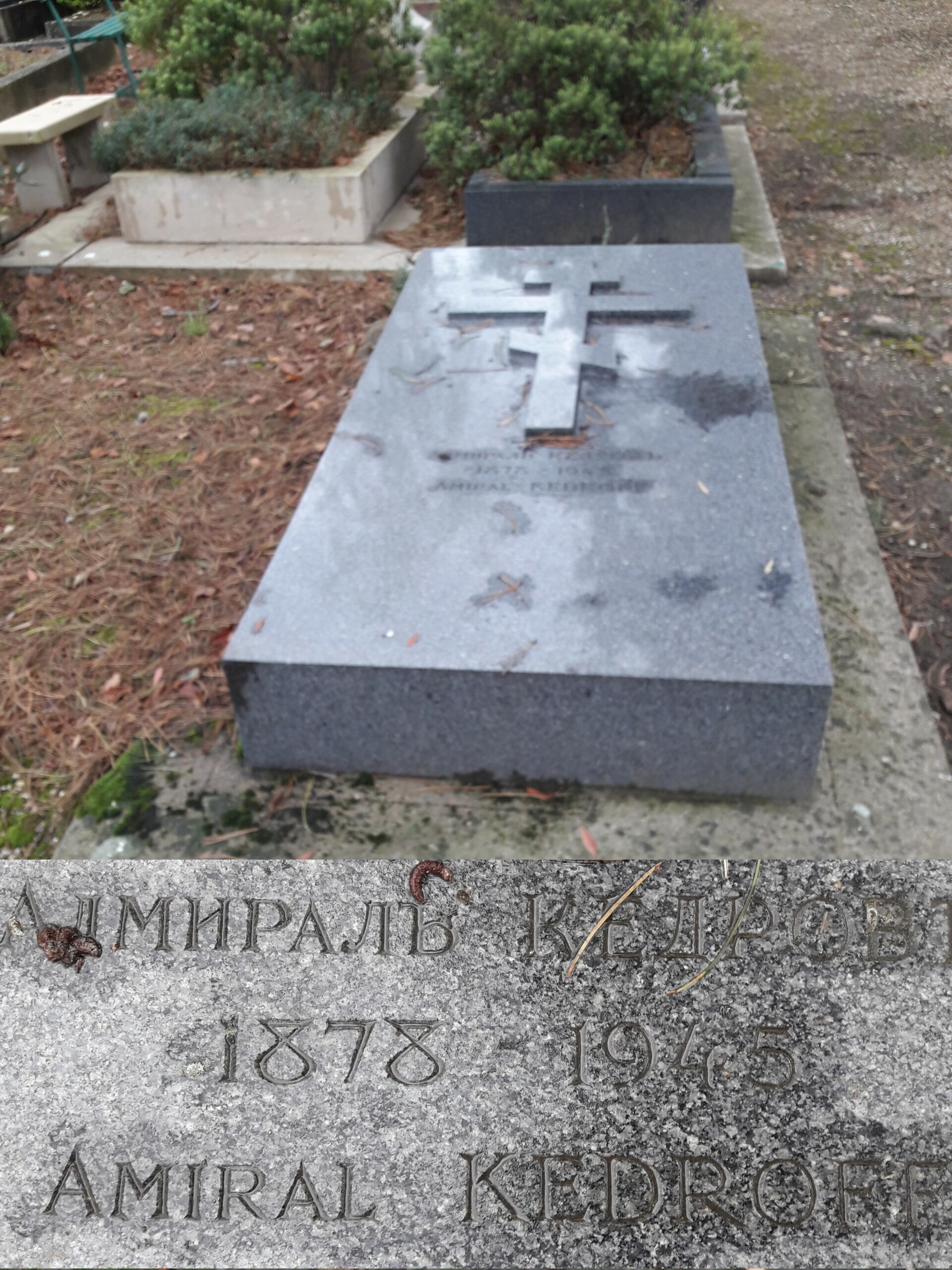 Могила последнего командующего Черноморским белым флотом и Русской эскадры, вице-адмирала Кедрова, Михаила Александровича, р. 13 сен. 1878 Ум. 29 окт. 1945, (фотография ПЛ)